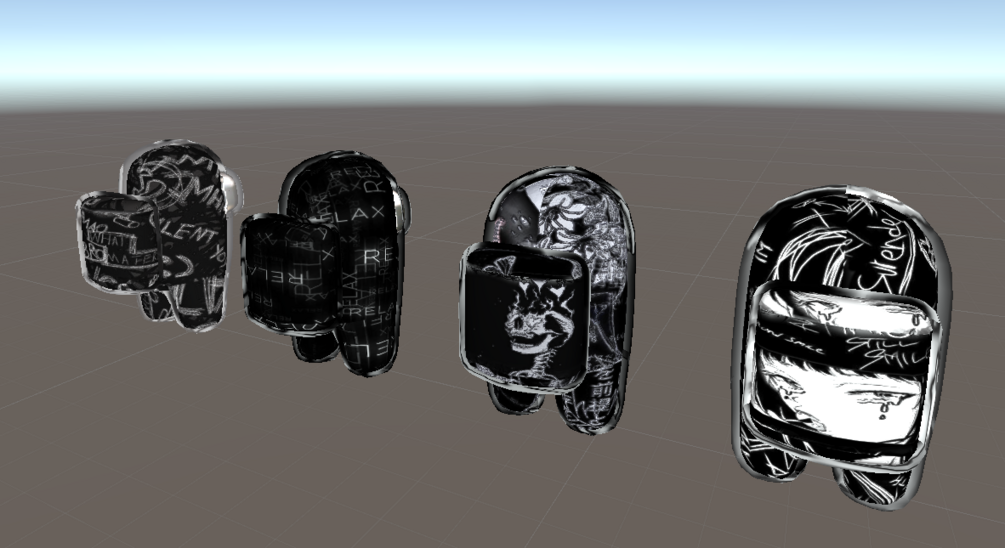❤️ This package only contains materials and textures you must drag and drop them on your among us character ❤️